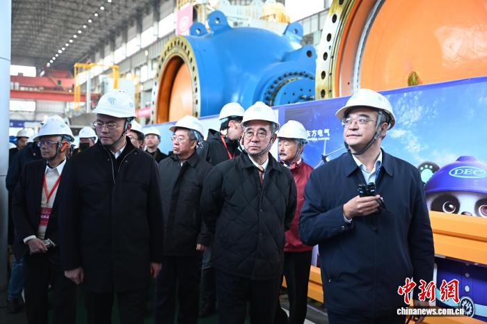 图为台湾各界人士正在西方电气呼呼团体西方机电无限公司观光。中新社记者 弛浪 摄